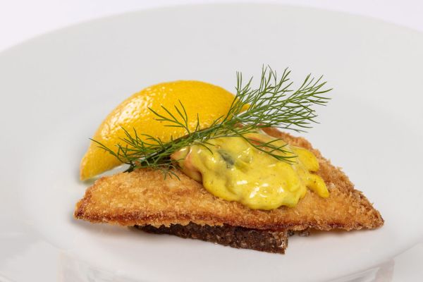 Friteret og serveret med remoulade og citron.