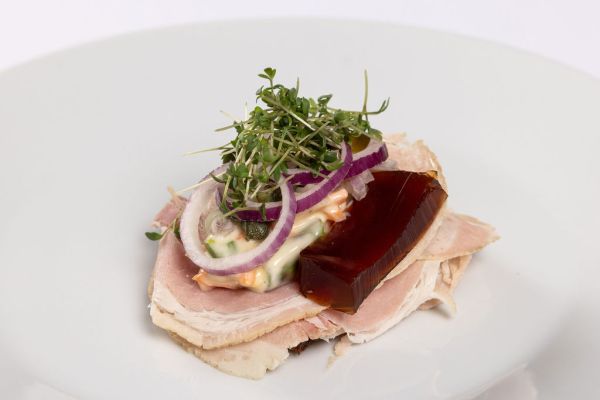 Italiensk salat, portvinssky, kapers og rå løg.
